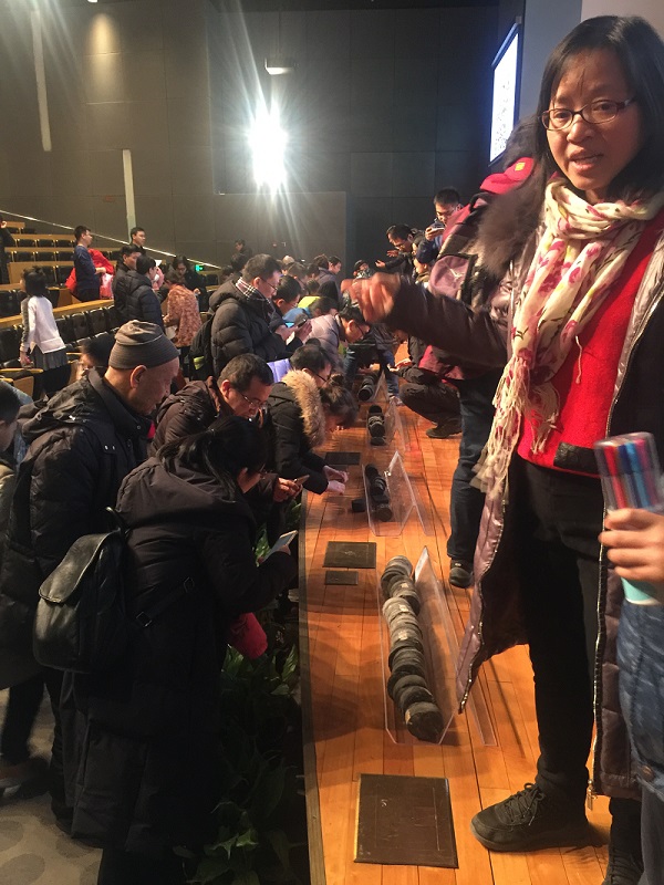 在神秘的地层世界里,蕴含着各种各样的物质,其深达1000米~5000米不等的页岩地层中,就蕴藏着一种非常规天然气资源——页岩气。页岩气是从页岩层中开采出来的天然气,成分以甲烷为主,主要用于居民燃气、汽车燃料、化工原料等。本讲座主要向大家介绍页岩气是什么?主要分布在什么地方?人们如何寻找、开发、利用它?在未来能源生产和消费中的作用是什么?现场观众观察了来自鄂西地下3500米深度、年龄6.3亿年的富有机质页岩岩心,观看数万倍电子显微镜下的页岩岩石结构和纳米孔隙照片,以及页岩气科普动画视频等。讲座很好地激发了大家对地质科技的关注和讨论,现场气氛热烈,观众们流连忘返。