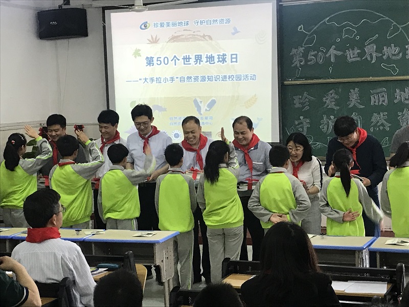 4月25日,第50个世界地球日活动周期间,中国地质调查局地学文献中心和自然资源部宣传教育中心在江西省赣州市五云镇中心小学开展了科技扶贫科普先行暨地学科普进校园活动,自然资源部、文献中心、宣教中心、五云镇相关领导和科普工作人员及师生180人参加了活动。