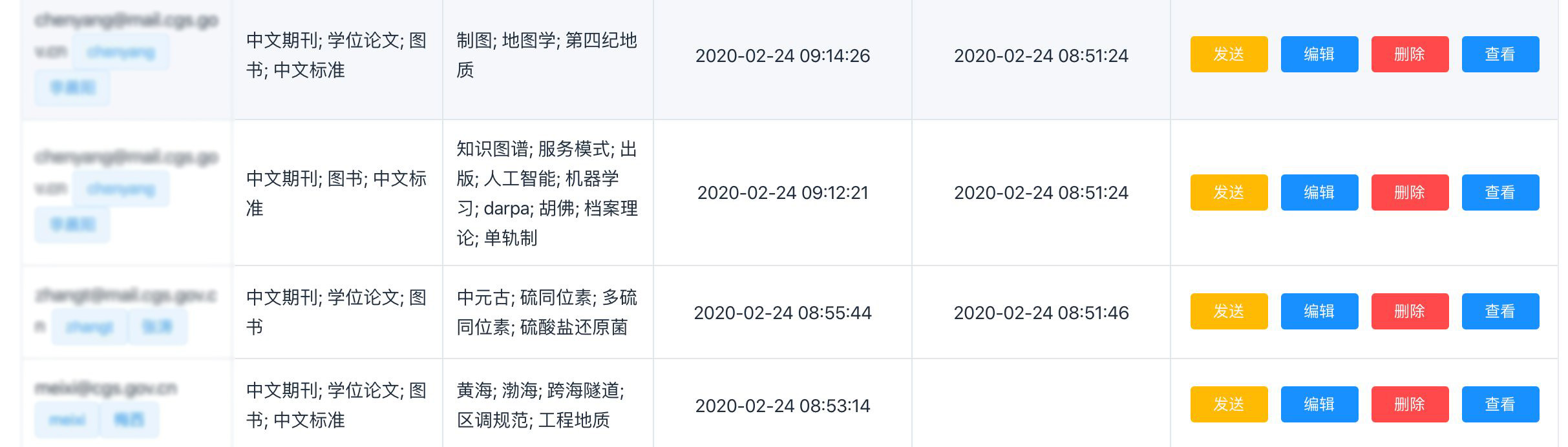 新冠肺炎疫情防控期间,自然资源部中国地质调查局地学文献中心坚守阵地,一边积极应对疫情防控,一边积极谋划推进各项工作。在统筹各类资源保障文献服务的同时,为了更好地实现远程精准服务,“地学文献信息更新与服务”二级项目组,开发了文献订阅与推送工具,运用大数据和知识图谱技术,结合466位二级项目负责人的业务领域和近期的业务需求,推送了最新的专业文献资料。