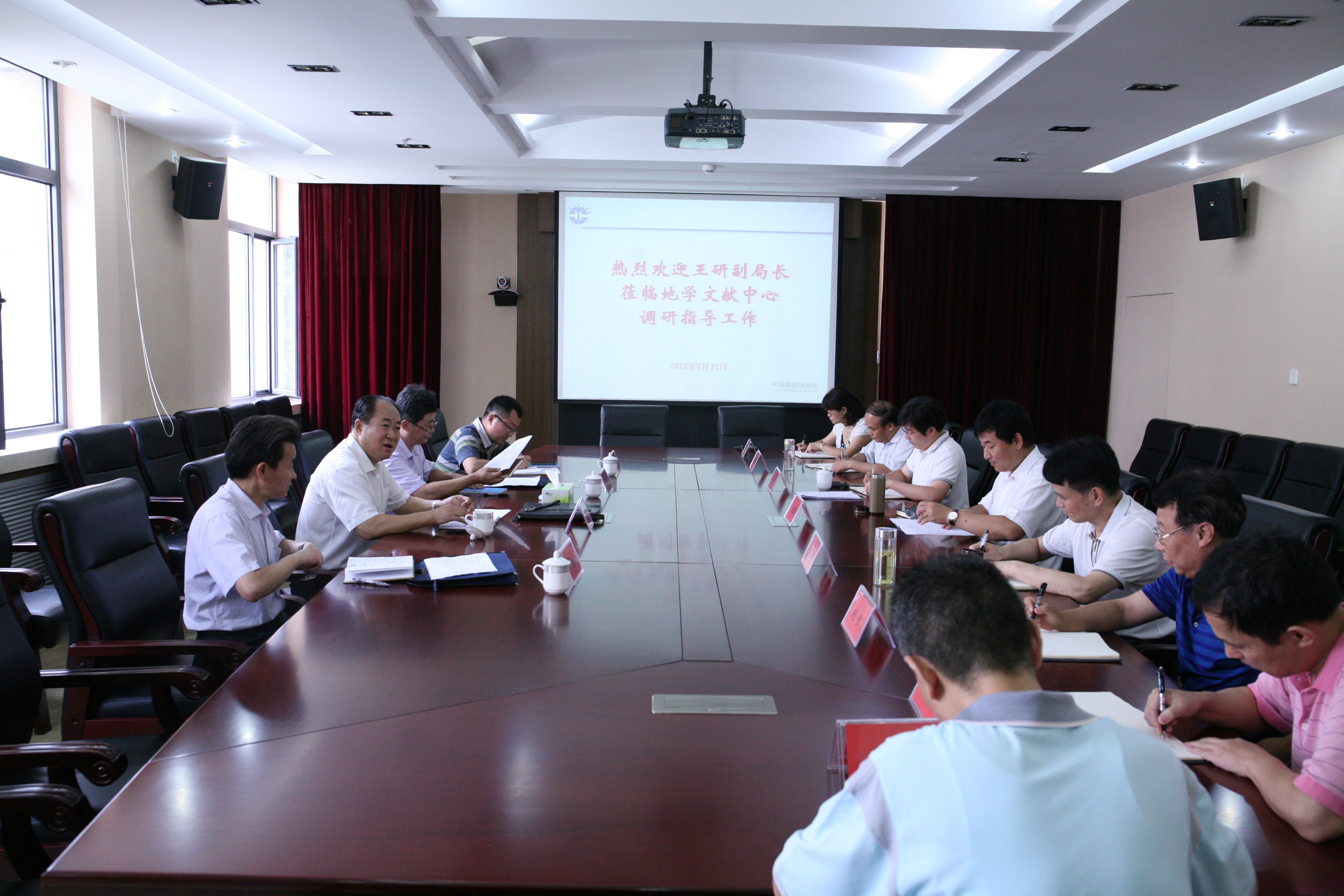 为贯彻落实局党组重大决策部署,进一步推动“两重”工作、政治生态整治专项行动和基层党组织建设。7月17日上午,中国地质调查局党组副书记、副局长王研来文献中心调研指导工作,局人事教育部主任赵奇、直属机关党委常务副书记沈建明、办公室新闻宣传处副处长王磊陪同调研。中心领导班子成员和管理处室负责人参加了调研和座谈会议。