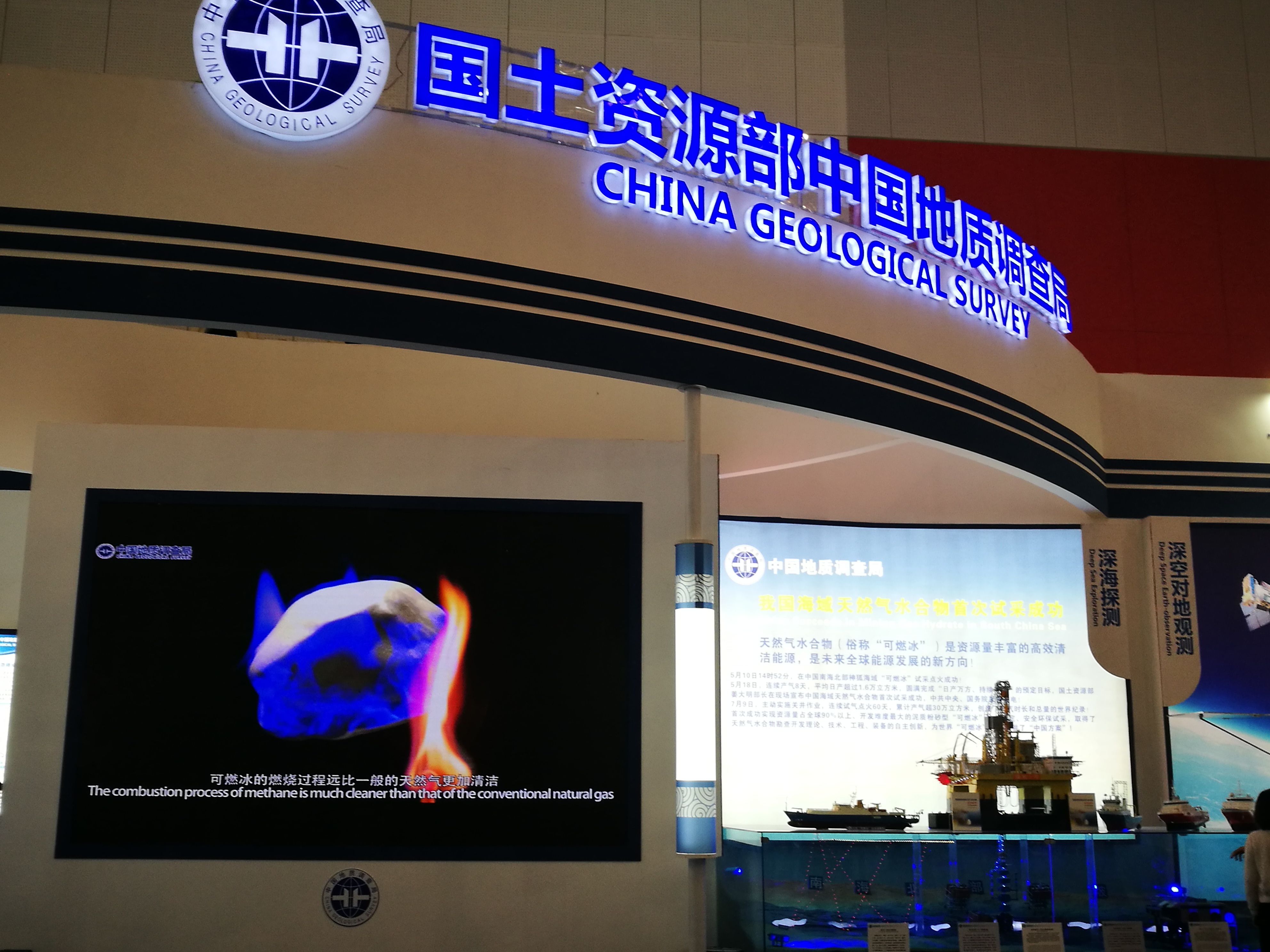 9月23日,中国地质图书馆(中国地质调查局科普办公室)制作的科普视频《地质调查100问-沉睡的能量块可燃冰》在中国国际矿业大会上,通过中国地质调查局展位巨幅显示屏和图书馆智能互动平台进行播放,吸引了众多中外参会代表驻足观看。视频通过生动的配音、活泼的画面、细致的中英文字幕使国内外友人快速了解了可燃冰这一新型的能源矿产。