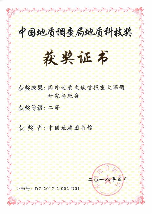 由自然资源部中国地质调查局地学文献中心王淑玲带领的文献情报团队,在“国外地质文献资料集成服务与分析研究”项目的支持下,立足国外地学科技情报前沿,瞄准国家重大需求和地质调查中心工作,开展系统监视分析、深入专题研究和及时全面服务。开创非常规能源、国外地质调查管理、海洋地质情报三大特色研究领域,填补了国内相关领域空白;有效支撑了我国页岩气、增强型地热的勘查开发及天然气水合物试采;建立了集特色领域、显著成果、高效团队、有效服务为一体的国外地学情报研究和服务体系;打造出一支业务过硬、务实高效的地学文献情报研究团队,培养了一批情报人才。“国外地质文献情报重大课题研究与服务”成果荣获中国地质调查局科技成果二等奖,实现地学文献中心地调局科技成果奖零的突破。