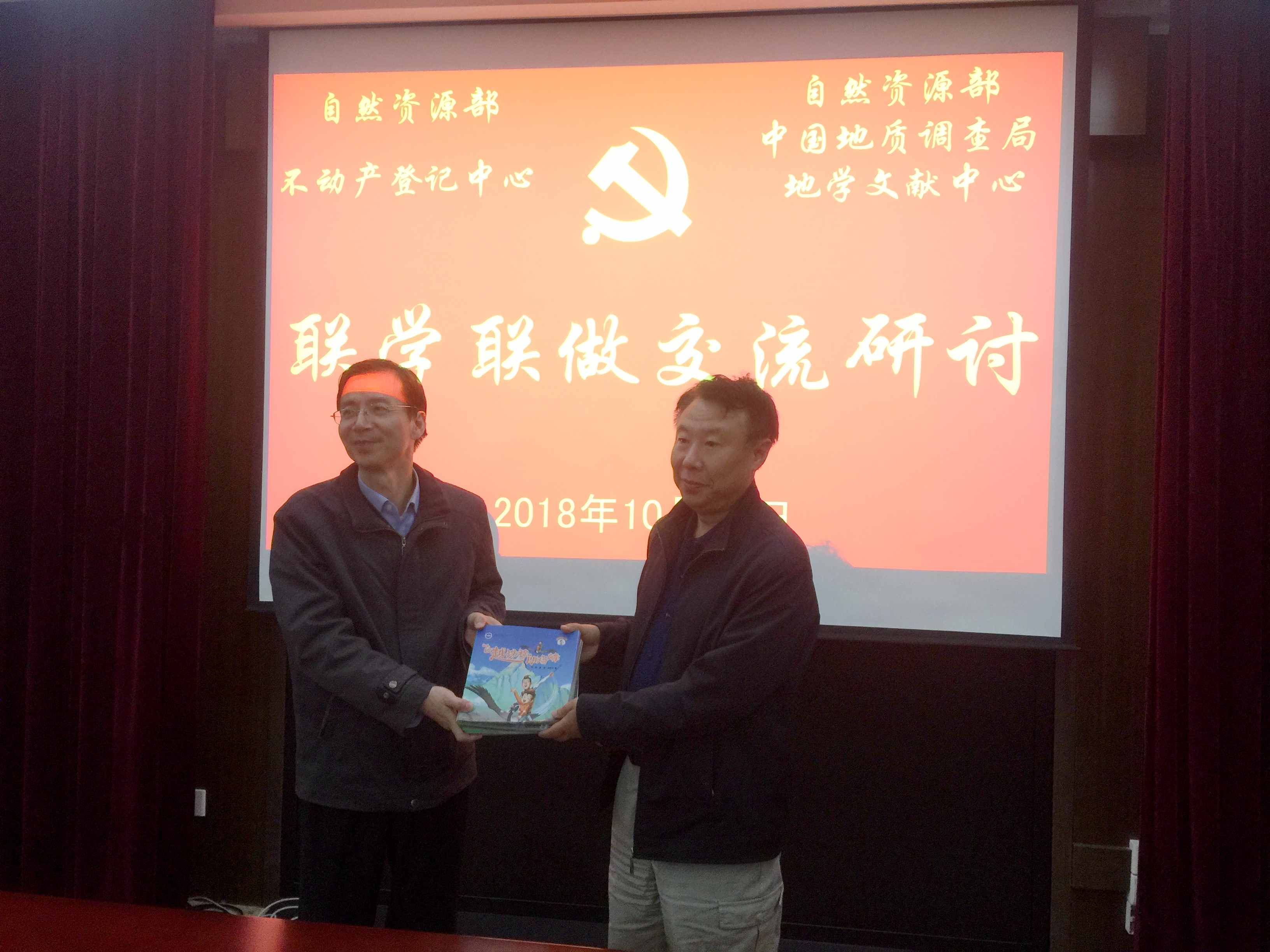 10月26日,自然资源部不动产登记中心来到文献中心人、财、科技、后勤联合支部开展“联学联做”学习交流活动。双方先是将本单位的基本情况进行了介绍,随后就各自在业务发展、党建方面的难点热点做了细致、深入的讨论。大家发现虽然各自业务领域不同,但在新时代、新形势下如何服务好党和国家重大需求、如何服务自然资源事业快速发展、如何通过党建带动业务发展等问题上,都有着较为相近的共识与困扰。与会同志表示,通过“联学联做”,大家开诚布公、互通有无,加深了对兄弟单位的了解与认知,通过座谈,大家的思想进一步提高,理想信念进一步坚定。大家表示,要在部党组正确领导下,坚持解放思想,深化改革,围绕中心,服务大局,努力工作,为新时代自然资源事业的改革与发展贡献我们每一个人的力量。最后,双方互赠了图书并合影留念。