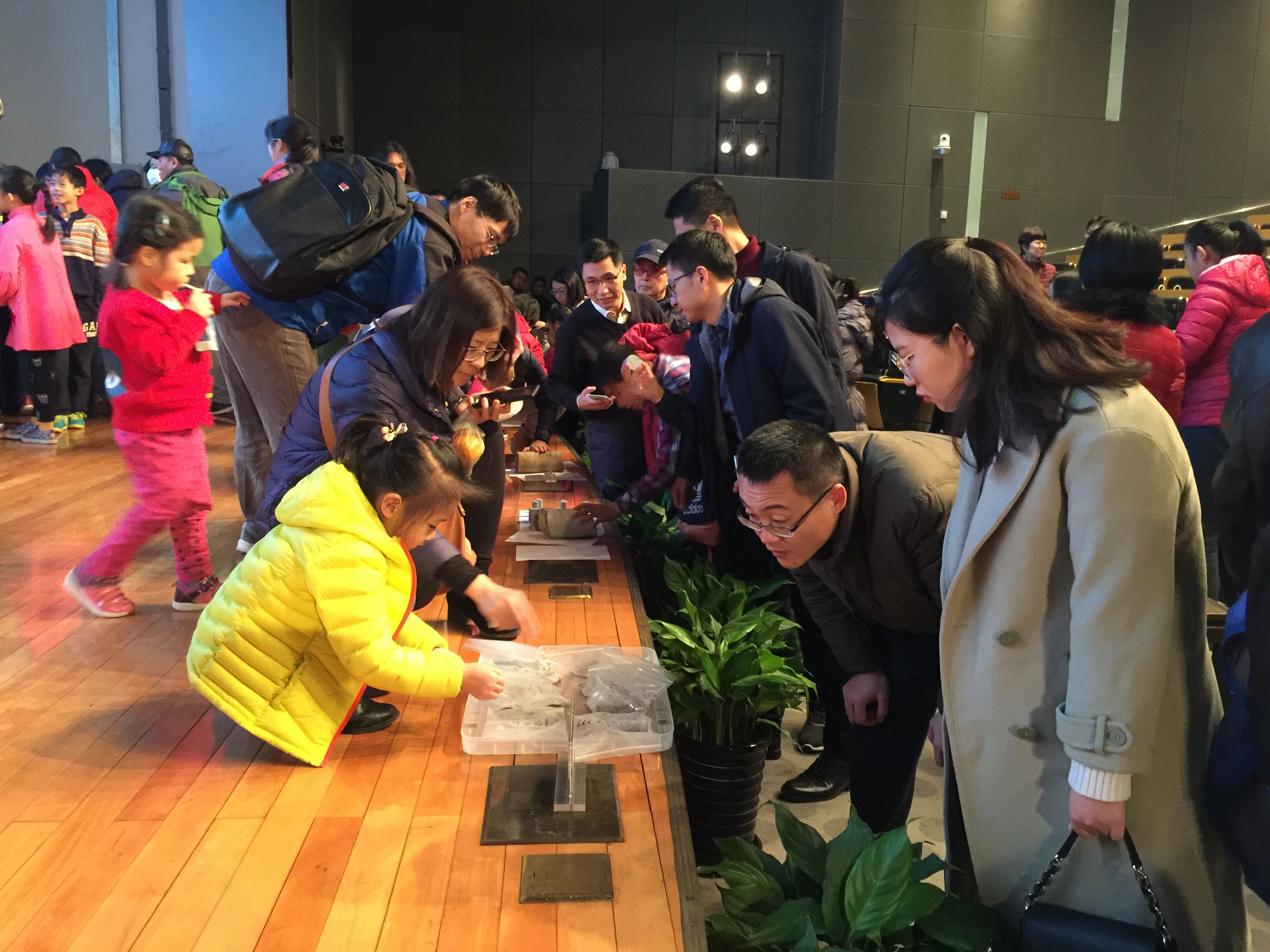 现场邀请大家利用偏光显微镜观察岩石结构、雾霾颗粒等,测试不同材料热量传导系数,观看青海地下3500米深度采取的干热岩岩心、雄安新区地下1500米深度采取的岩屑等。现场气氛热烈,观众们流连忘返,引起了大家的广泛关注与讨论。