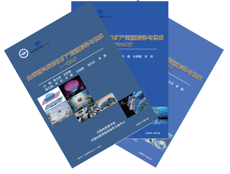 2016年8月,地学文献情报室三稀项目研究团队同时出版和发行了三部情报专辑:《全球新兴战略性矿产资源形势与供求——稀土篇》;《全球新兴战略性矿产资源形势与供求——稀有金属篇》;《全球新兴战略性矿产资源形势与供求——稀散金属篇》。