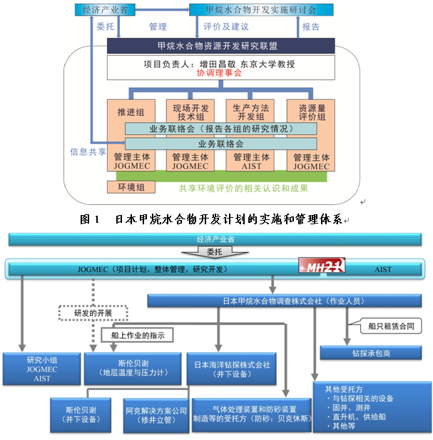 日本甲烷水合物开发计划第三阶段的实施和管理体系以及日本第二次近海甲烷水合物试采的实施体系主要由日本石油、天然气和金属矿产资源机构(JOGMEC)、日本产业技术综合研究所(AIST)和日本甲烷水合物调查株式会社(JMH)等机构主导,即将出版发行的内部刊物《海洋地质信息》第六期“天然气水合物资源勘查与试采”专刊对日本产业技术综合研究所、日本石油勘探株式会社(JAPEX)和日本甲烷水合物调查株式会社的甲烷水合物研发工作进行了报道。