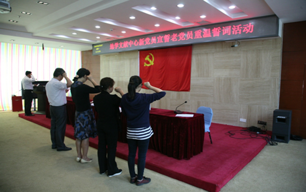 为进一步深入推进“两学一做”学习教育,使学习教育取得良好效果,中国地质调查局地学文献中心于9月26日开展了党课教育暨组织党员观看《党课1小时》专题片和预备党员宣誓、正式党员重温入党誓词活动。党委书记蔡纲同志主持、中心70余名党员参加了此项活动。