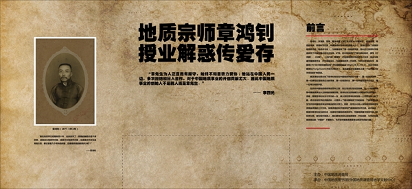 由中国地质调查局主办、中国地质图书馆(中国地质调查局地学文献中心)承办的“地质宗师章鸿钊 授业解惑传爱存——章鸿钊先生实物展”于2016年11月7日在中国地质调查局机关大厅正式拉开帷幕。