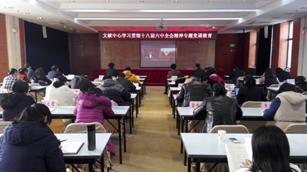 为切实深入学习领会十八届六中全会精神,推进全面从严治党,结合“两学一做”学习教育,地学文献中心于11月25日开展了学习贯彻十八届六中全会精神专题党课教育。中心全体党员、入党积极分子70余人参加了学习。