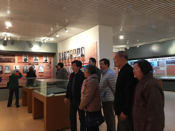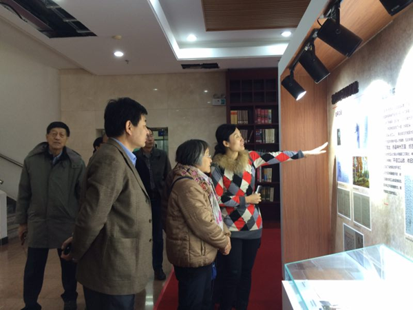 薛山顺副馆长陪同章鸿钊先生家人参观馆史展