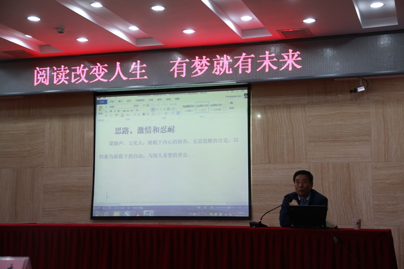 为提高中心青年多读书、多好书的积极性,激发青年积极向上、努力奋发的精神。4月24日中心团委特邀请全国首席科学传播专家、首批国土资源首席科学传播专家、中国地质出版社总编辑王章俊,做“读书改变人生,有梦就有未来”主题讲座。通过系列活动,中心青年享受到了读书的乐趣,唤起了大家渴求知识的热情,为青年交流与分享创造了平台,展示阅读的乐趣与魅力。