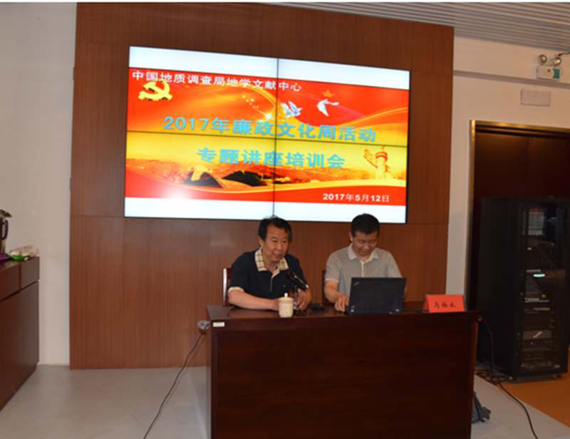 5月12日,地学文献中心在廉政文化图书馆开展廉政文化周专题讲座培训。这是中心年度党风廉政建设工作安排之一,也是中心落实局 2017年廉政文化周要求的重要活动之一。中心纪委委员、各处室负责人、各支部书记,二级项目及子项目负责人、支部纪检委员、监审处人员参加了培训。