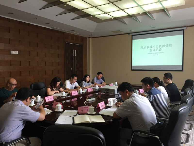 会上,项目负责人周峰汇报了分中心术语管理建设规划,从现状调研、术语资源管理与描述、更新维护、应用场景几个方面展开介绍,地质领域术语资源是文献描述规范化、知识关联关系发现的基础,做好术语建设,对知识组织、挖掘具有重要作用。目前地质领域重要术语资源来自地球科学大辞典、地质汉语叙词表、主题词表等,课题组充分利用现有资源,不断积累经验,发现资源,集成地质领域(中英文)术语达18万余条,已经初步建成地质术语系统。通过边建设边服务的指导思想,实现了在线术语查询服务。