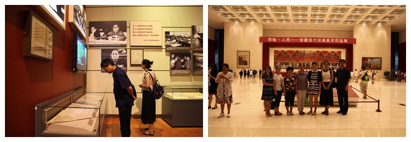 之后参观了国家博物馆,走进《复兴之路》大型展览厅,心瞬间沉静下来。在大量珍贵历史资料和文物的基础上真实再现了中国百年来艰苦曲折的复兴之路。沉重的历史资料依次陈列在眼前引导我们去回忆那不能忘却的沉重历史。“领袖·人民——馆藏现代经典美术作品展”上长达17米的《新中国诞生》再现了1949年10月1日,毛泽东主席在天安门城楼上宣告中华人民共和国成立的情景以及第一届中央人民政府全体63位委员的风采。