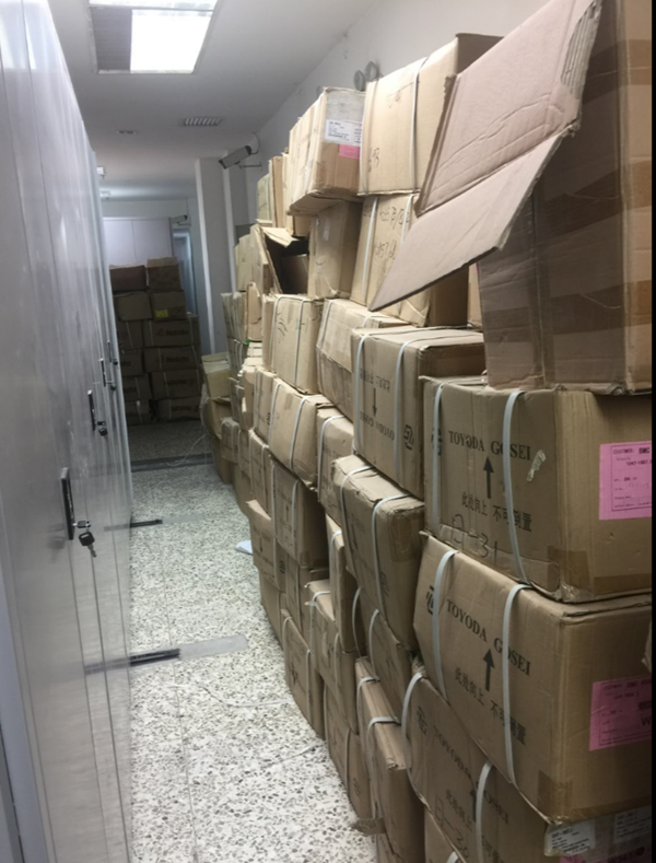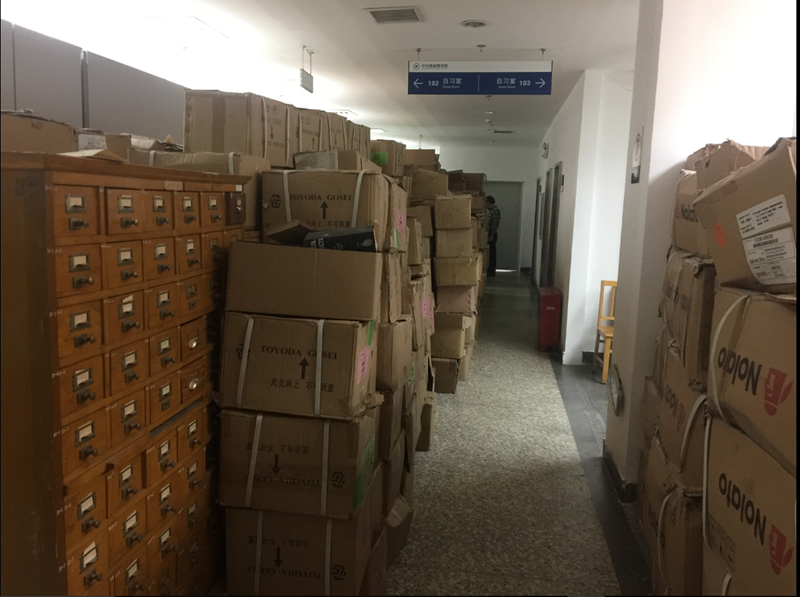经过中心领导协调增加书库房间,相关室配合将未编目、非馆藏图书清理后,还剩下500余箱过去测试所赠送的期刊,这些期刊是1996年从甘家口搬到中心后一直未开箱整理。