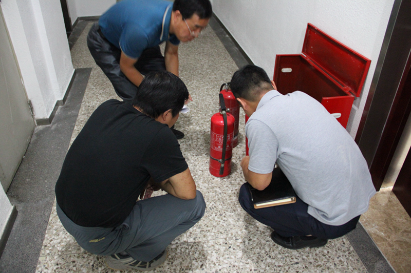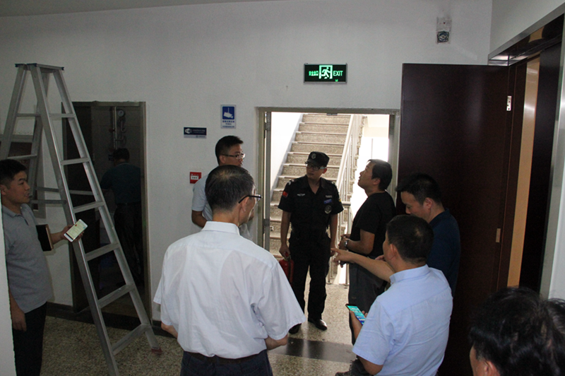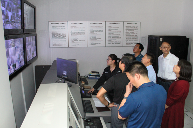 在实地检查中,检查组本着因地制宜、注重实效的原则,通过模拟“起火”的方式,检验中心消防应急系统运作情况。在触发烟感报警器后39秒,安保人员携带灭火器到达了“起火点”,并报告了接到监控室对于“起火”详细位置的情况,表现较好;随后,检查组前往监控室、书库、机房进行走访,询问了相关责任人的岗位职责及应急处置方式,还检查了沿途道路和场所的有关状况。