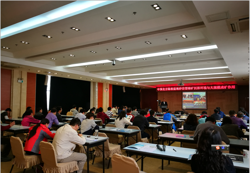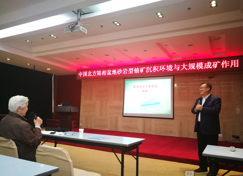 金若时研究员长期从事地质矿产勘查研究工作,在金、煤、铁和铀矿等矿产资源实际找矿工作中为国家做出了贡献,创新了砂岩型铀矿的找矿新思路,取得了砂岩型铀矿产出模式层序、铀矿床分类、表生流体成矿等方面原创性理论研究成果。近年来,组织参与了“大营铀矿普查”会战;组织华北地区砂岩型铀矿勘查选区研究;主持了“我国主要盆地煤铀等多矿种调查评价”、“中国北方砂岩型铀矿工程”、“中国北方巨型砂岩铀成矿带陆相盆地沉积环境与大规模成矿作用”等项目。此次报告,为不少业内研究者在铀矿找矿方面取得更大突破性成果传经授宝,受到与会者的热烈欢迎。
