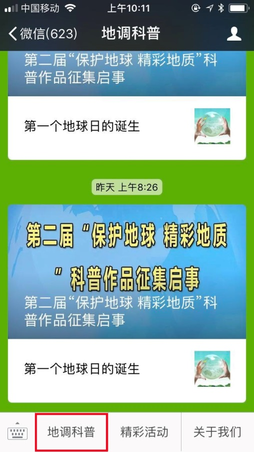 用户可以通过手机浏览器输入http://m.china-shj.org.cn,或关注 “地调科普”微信公众号,从下方的“地调科普”栏目访问地质调查科普网站手机版。