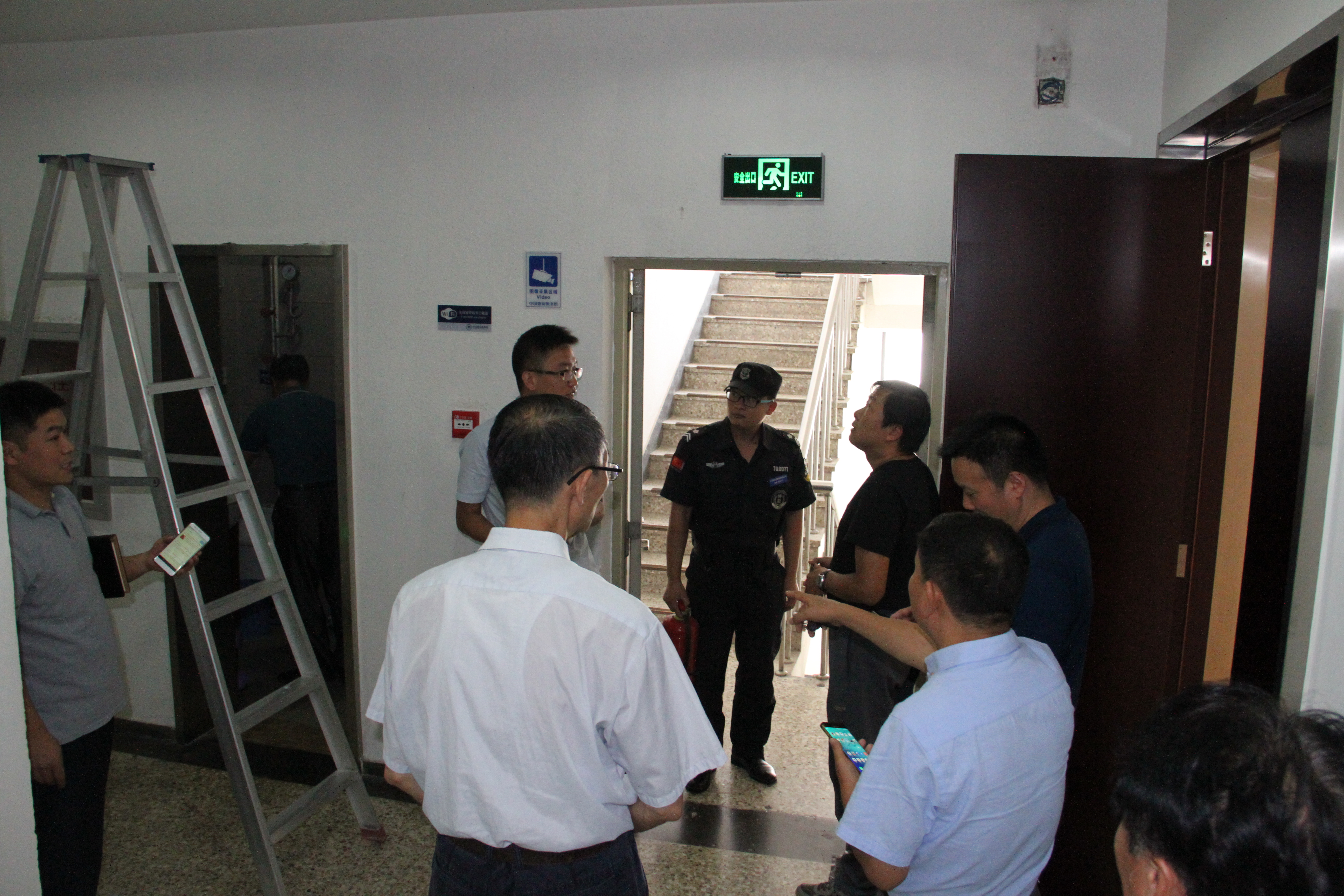 在实地检查中,检查组本着因地制宜、注重实效的原则,通过模拟“起火”的方式,检验中心消防应急系统运作情况。在触发烟感报警器后39秒,安保人员携带灭火器到达了“起火点”,并报告了接到监控室对于“起火”详细位置的情况,表现较好;随后,检查组前往监控室、书库、机房进行走访,询问了相关责任人的岗位职责及应急处置方式,还检查了沿途道路和场所的有关状况。