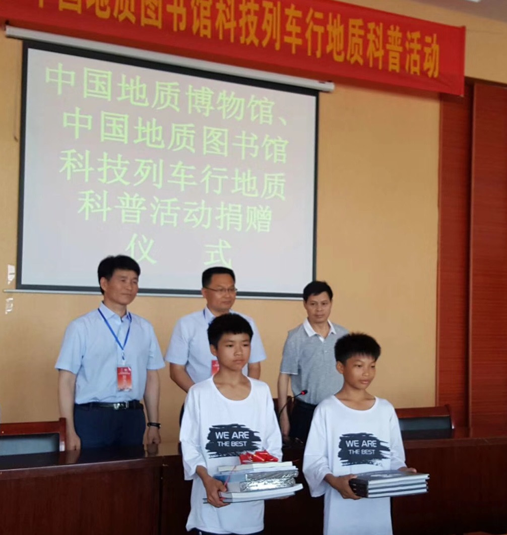 活动期间,自然资源部在主会场将图书馆提供的300余册科普图书捐赠给当地学校。图书馆科普工作人员随“科技列车云南行”富宁科技服务分队奔赴云南文山壮族苗族自治州富宁县开展科普活动,并在富宁县新华镇中心学校、木央镇中学和归朝镇中学做了题为《谈铀不必色变》和《地质学家丁文江》的科普讲座,为山区学生上了一堂精彩的地质科学课,受到老师和学生的热烈欢迎。