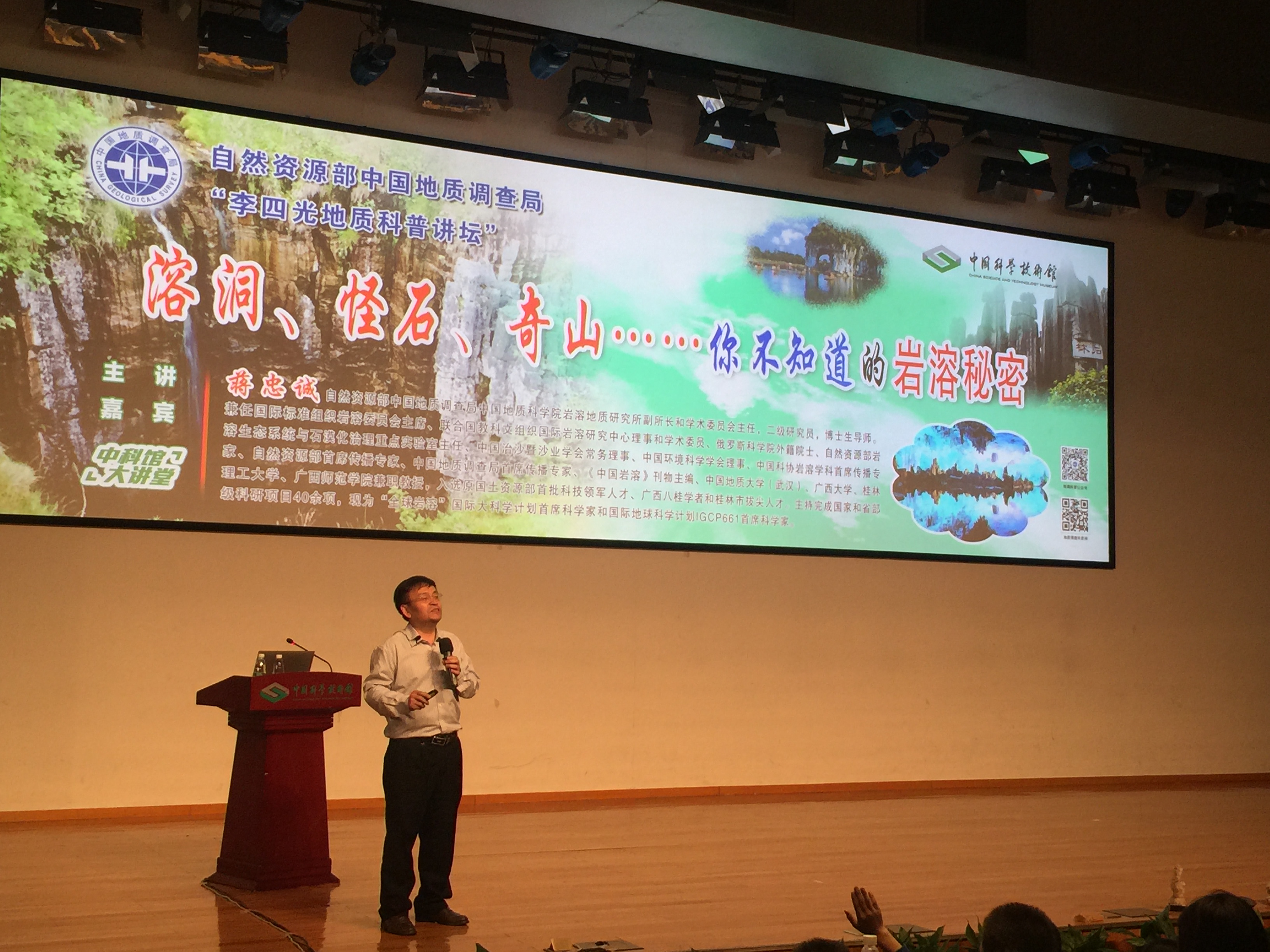 4月21日,由自然资源部中国地质调查局与中国科学技术馆联合主办,中国地质调查局地学文献中心、中国地质调查局中国地质科学院岩溶地质研究所承办的“李四光地质科普讲坛(第六期)”暨中科馆大讲堂在中国科学技术馆成功举行。岩溶所蒋忠诚研究员做题为了“溶洞、怪石、奇山……你不知道的岩溶秘密”主题讲座。地调局相关人员及现场中小学生和家长等近300人参加了此次活动。