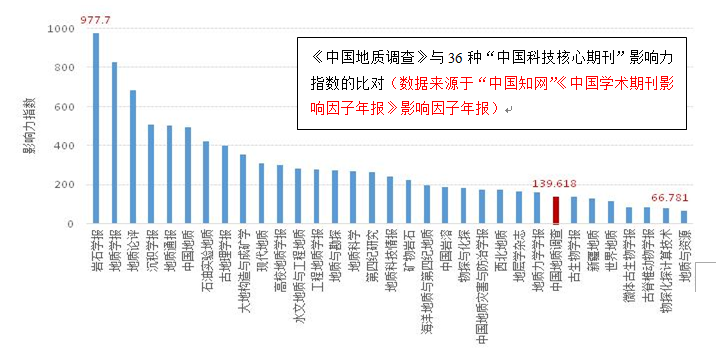 影响力指数是“中国知网”近几年创新的另一种期刊评价指标,它通过综合运用“总被引频次数”和“影响因子”两个参数,更加客观地反映了期刊学术影响力的相对水平。据“中国知网”2017—2019年统计年报,《中国地质调查》影响力指数已从2017年的7.674提高到2019年的139.618,三年内,该指标提升了近20倍。同样,如果将《中国地质调查》的影响力指数放在地质学类36种“中国科技核心期刊”中进行比对,