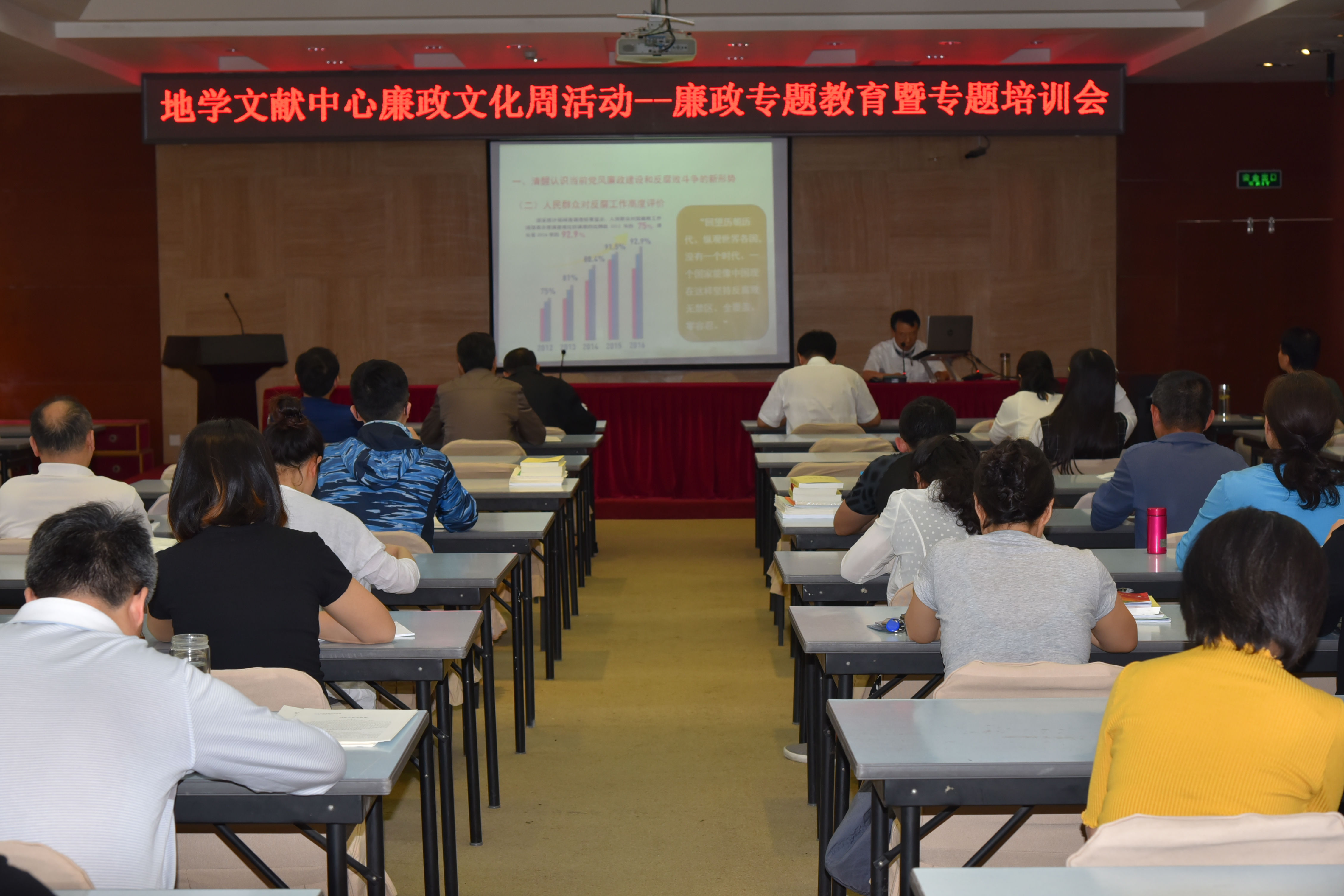 5月10日,地学文献中心按照廉政文化周活动安排举办了廉政专题教育课并进行专题培训。