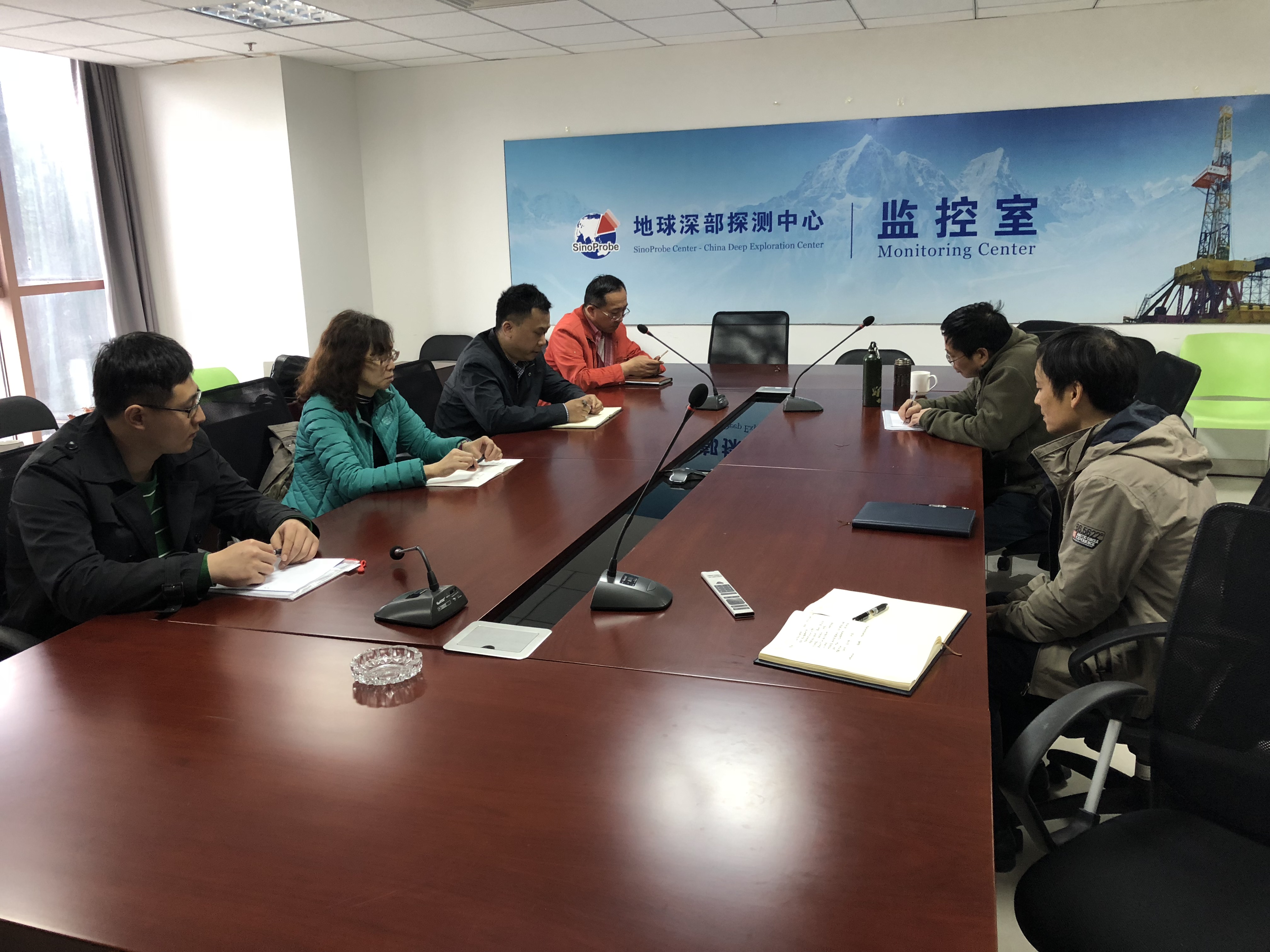 会谈过程中,地学文献中心情报室吕鹏副主任首先介绍了中心文献采集、分析技术手段方面的优势,还对深部探测研究的认识进行了交流。随后,深部探测中心的陈宣华研究员介绍了局深部探测的任务目标并对该学科的结构,物质、模拟、技术等关注重点以及五个方面的应用进行了详细的介绍,同时指出了深部研究方面的重点和难点。