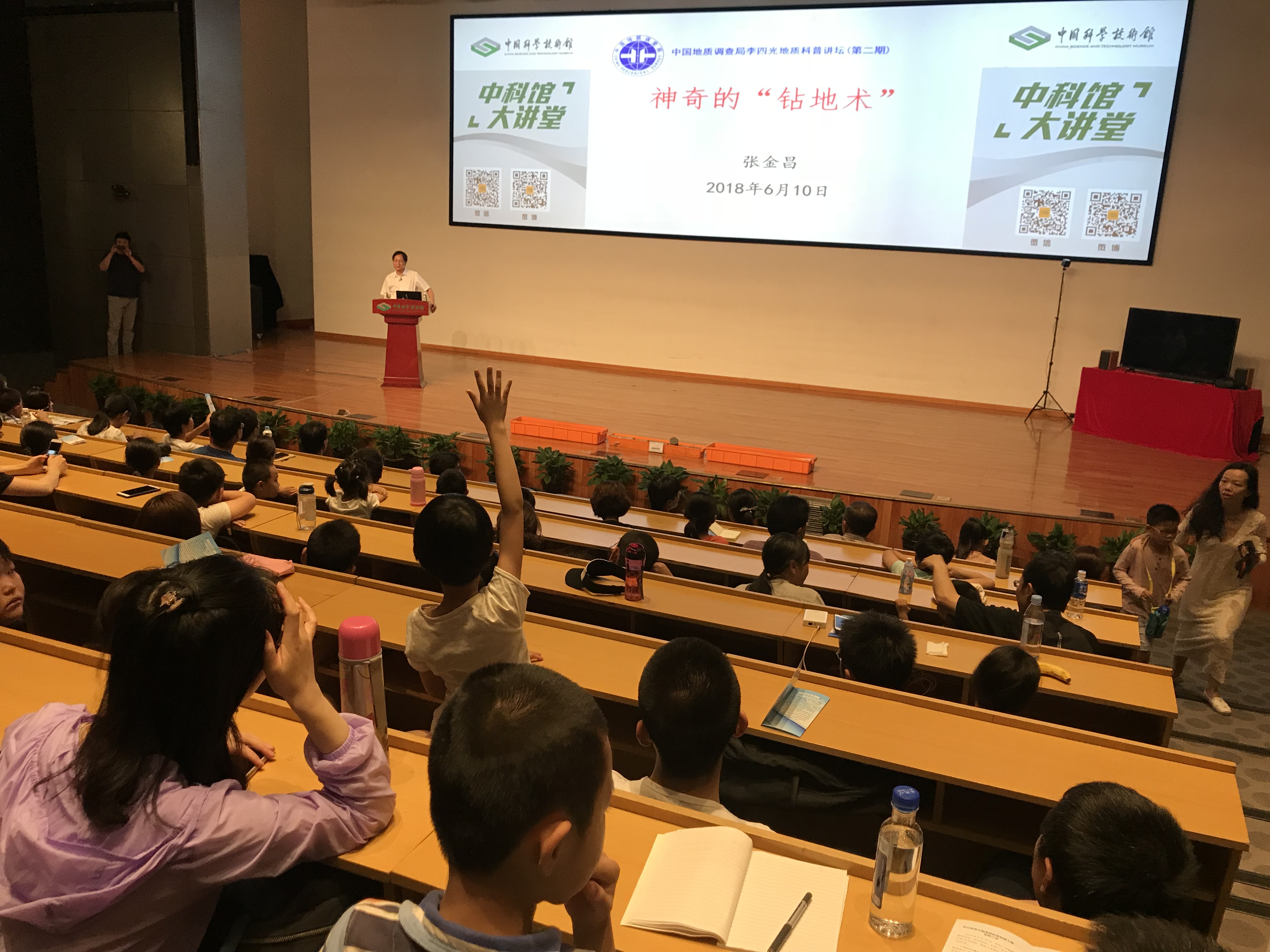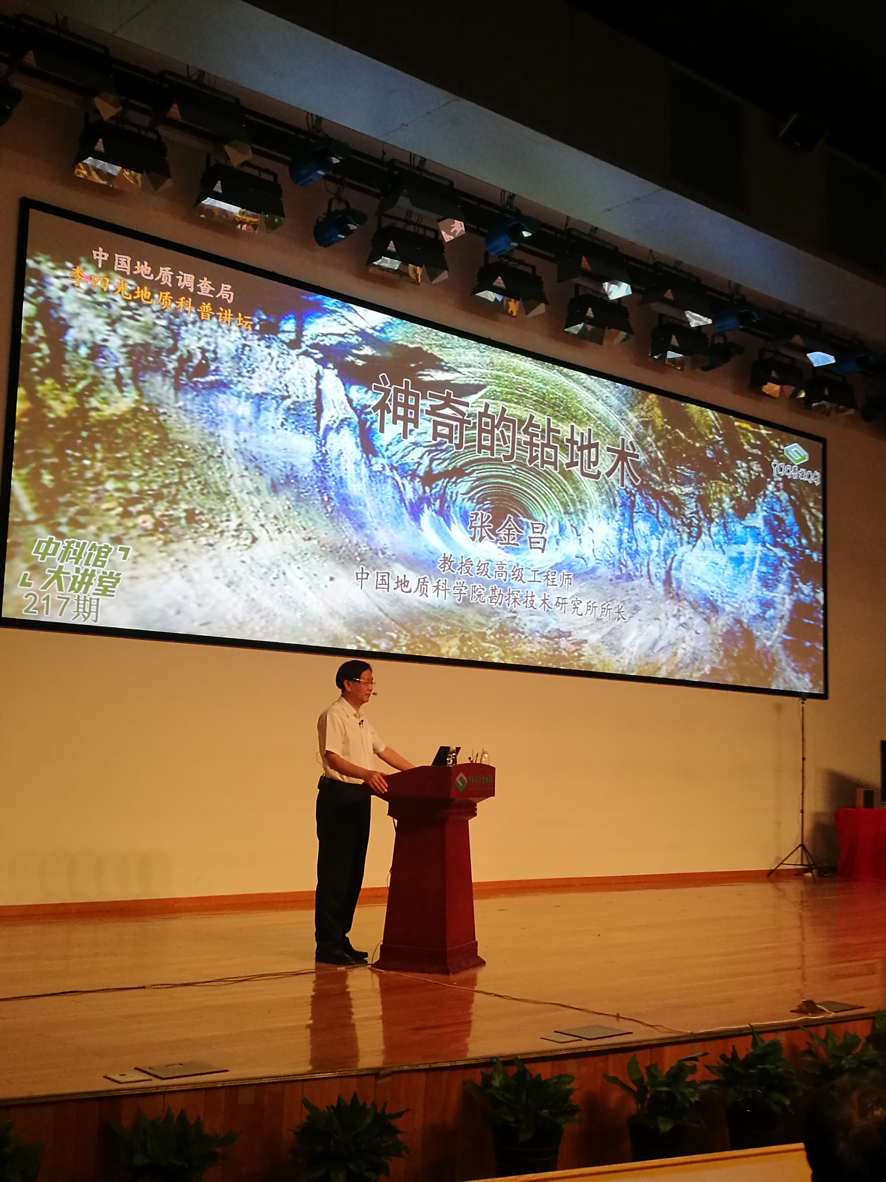 6月10日,由中国地质调查局主办,地学文献中心(局科普办公室)、勘探技术研究所、国土资源实物地质资料中心承办的“李四光地质科普讲坛” 第二期在中国科学技术馆举办,中国地质调查局勘探技术研究所教授级高级工程师、“松科二井”深部科学钻探工程现场总指挥张金昌作了“神奇的钻地术”主题讲座。中国地质调查局科技外事部副主任刘凤山、中国地质调查局地学文献中心副主任单昌昊等部局相关人员及现场听众近400人参加了此次活动。