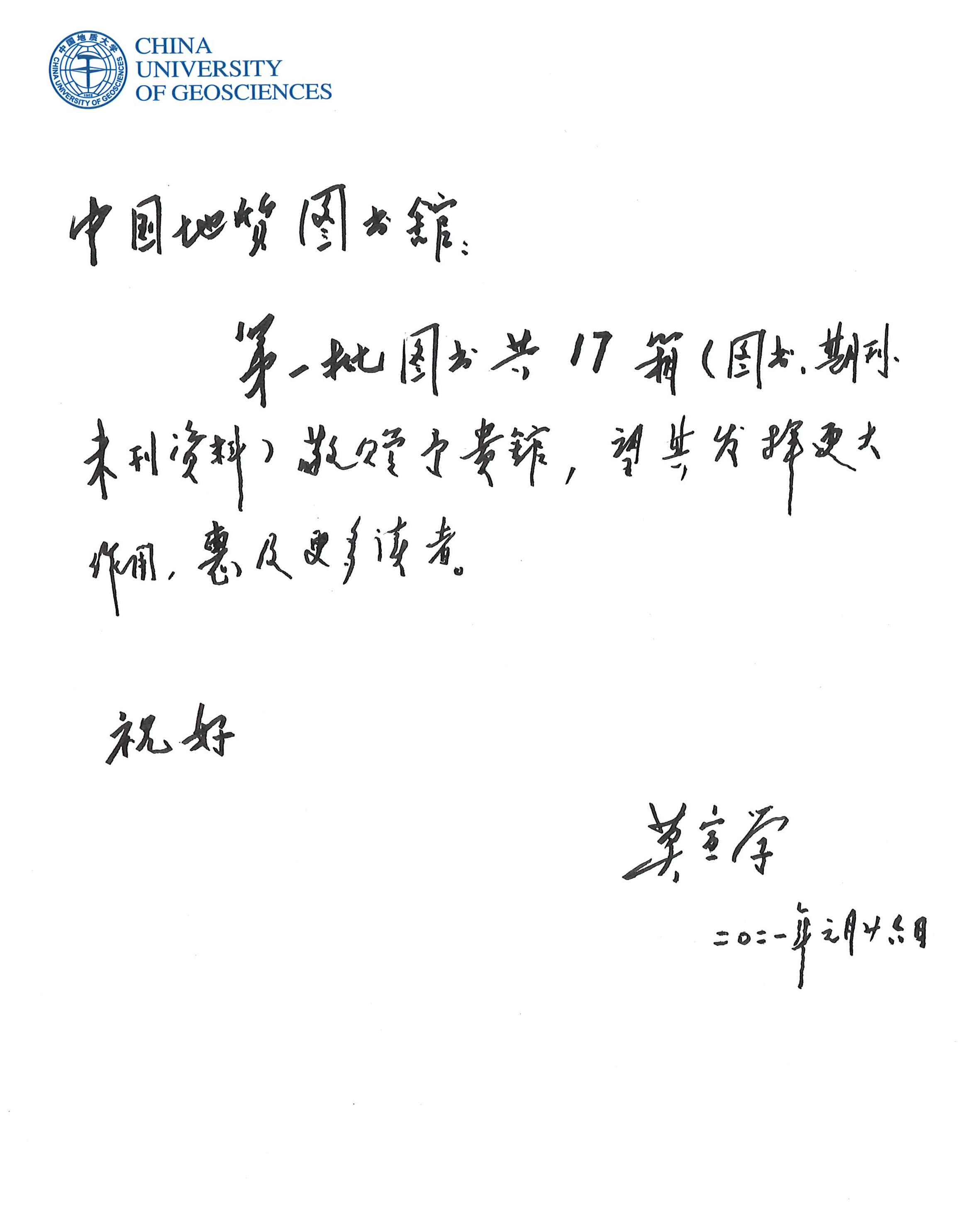 地质图书馆百年来始终秉承“有馆尤贵有书,有书尤贵有用”的馆训,领导班子身体力行加强图书捐赠的宣传工作,下力气坚持收藏、抢救、和挖掘珍贵文献资源建设。此次获捐的亲笔签名赠书及手稿等珍贵文献,丰富了馆藏珍贵文献,为中心进一步传承弘扬老一辈科技大师的科学报国、勇攀高峰、严谨求实治学精神和新时代地质文化奠定基础,为读者提供了向地质大师学习的窗口。