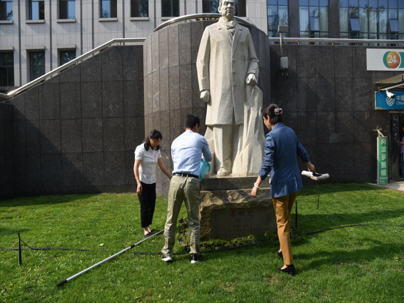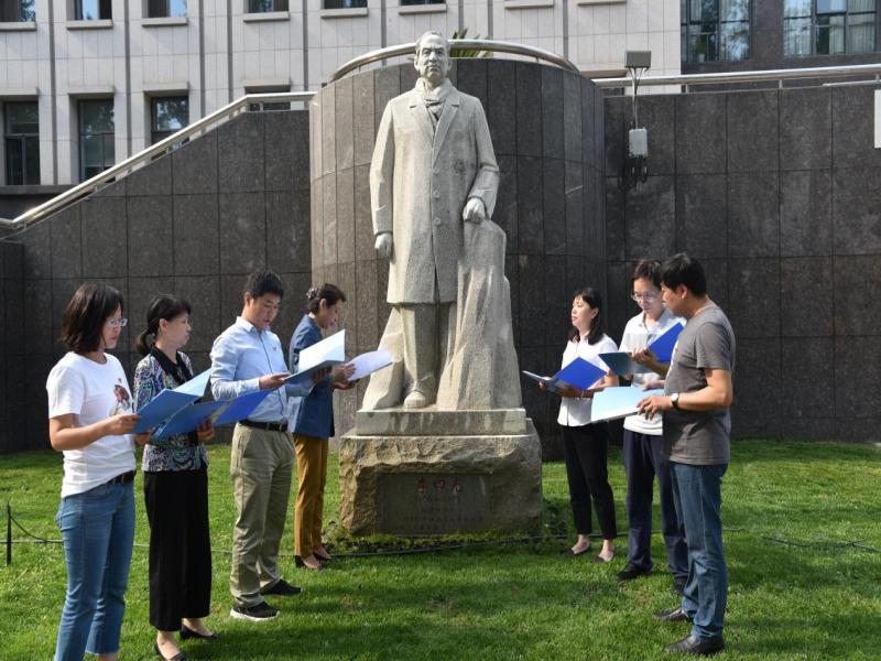 5月19日下午,支部成员怀着无比崇敬的心情来到位于中国地质图书馆大楼南侧的李四光雕像前,瞻仰这位伟大的爱国者、地质科学家,重温李四光英勇爱国的一生,感受地质人的革命精神。在雕像前,支部党员进行了诗朗诵,回顾了先生卓越的一生:作为一位地质学家在科学实践中贯穿了革命、育人、为人的科学思想;作为一位教育家诲人不倦、孜孜追求的品德;作为一名爱国人士他排除万难,最终回到祖国的怀抱全身心投入新中国建设;他的思想、精神、品德将永远鼓舞、影响、激励着我们每一个人!最后,大家共同清洗了李四光雕像。