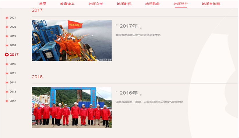 一册册纪实文学图书、一部部优秀地质影片、一首首动听地质歌曲、一幅幅野外工作图片全方位、多角度、深层次地真实记录了一代代地质人、一批批优秀共产党员披荆斩棘、艰苦创业、舍己为国的工作作风,充分展现了老一辈地质人爱国为民、无私奉献的精神,热情讴歌了新时代地质人“责任、创新、合作、奉献、清廉”的共同价值追求。