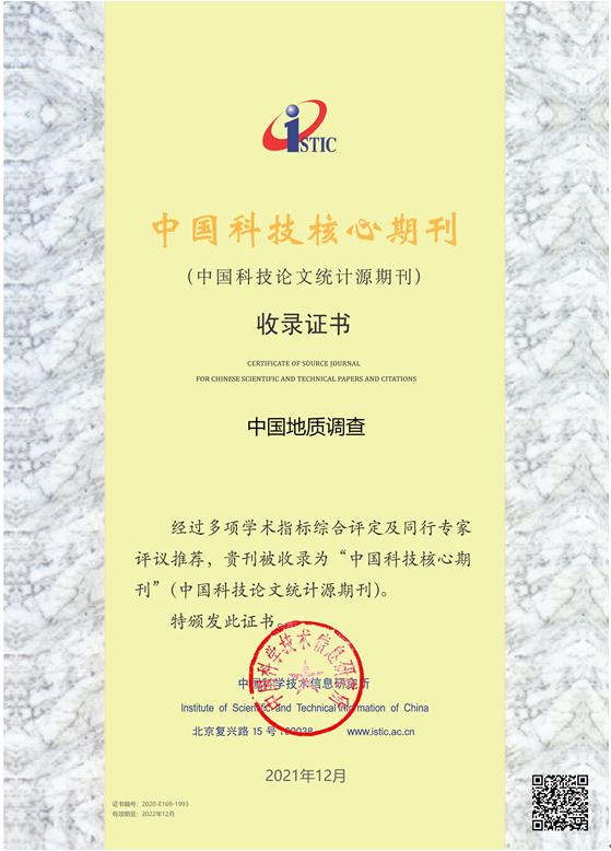 在2021年12月27日举行的“中国科技论文统计结果发布会”上,由中国地质调查局主管,中国地质调查局地学文献中心主办的《中国地质调查》成功入选《中国科技期刊引证报告》(核心版),成为“中国科技核心期刊”。这是《中国地质调查》自2014年创刊以来首次进入“中国科技核心期刊”阵营。《中国地质调查》的成功入选是期刊质量和影响力大幅提升的具体体现。