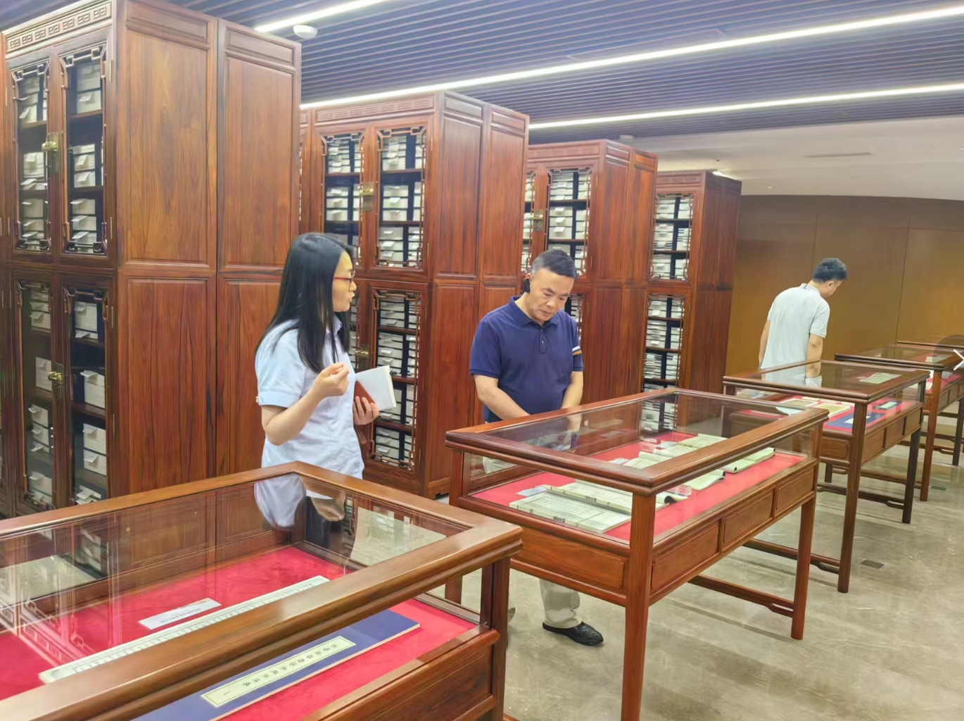 在古籍文献馆负责人陪同下参观历史文献阅览区