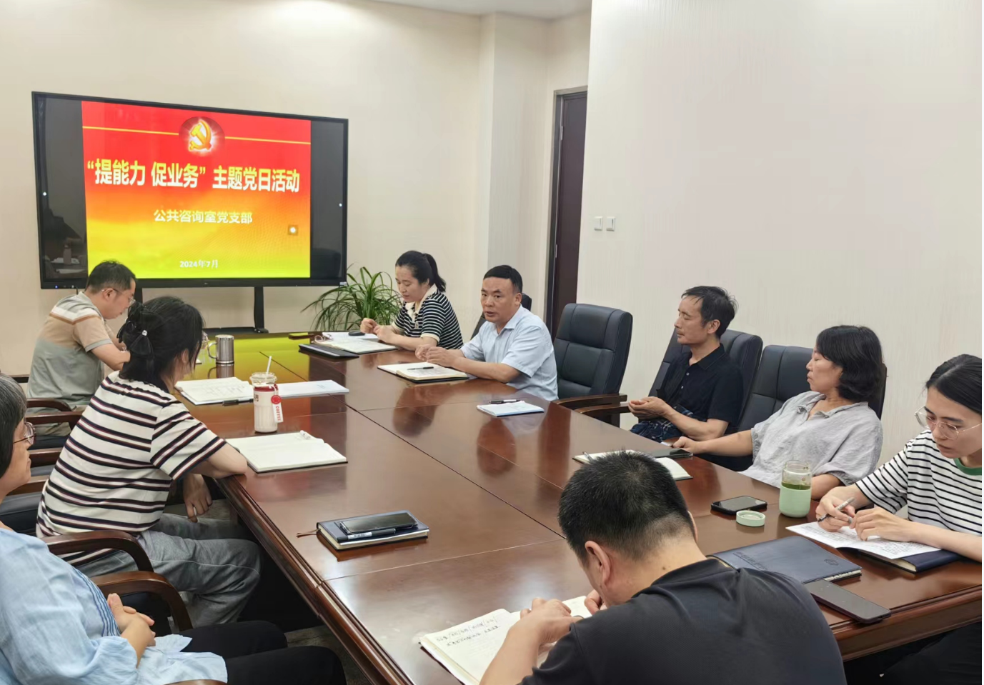 2024年7月12日下午,中国地质调查局地学文献中心公共咨询室党支部组织党员开展了以“提能力 促业务”为主题的党日活动。地学文献中心副主任赵可录、公共咨询室党员和群众参加活动。