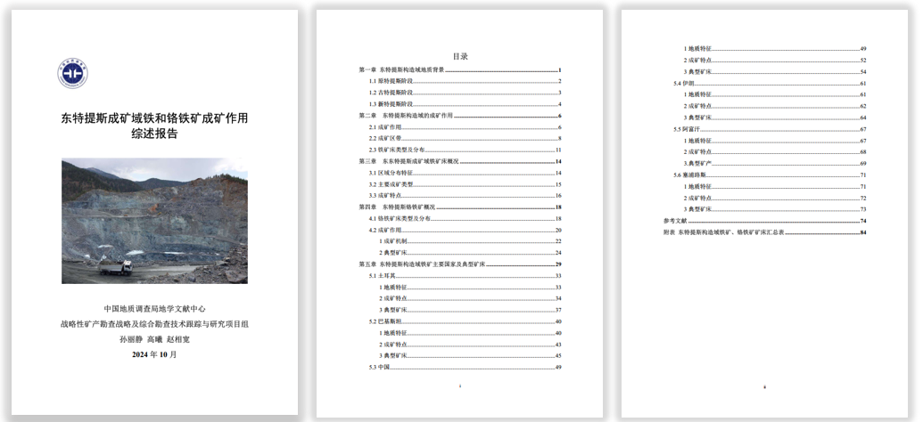东特提斯成矿域铁和铬铁矿成矿作用综述报告封面及目录
