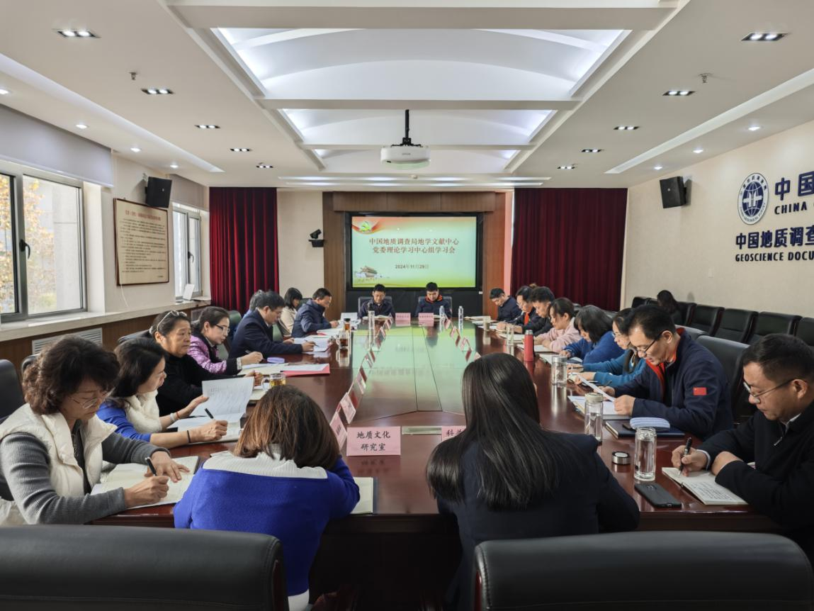 11月29日,中国地质调查局地学文献中心召开党委理论学习中心组学习会,深入学习贯彻党的二十届三中全会精神,着力在“学深”上下功夫,在“做实”上见成效。中心党委书记、主任薛迎喜同志主持会议并作总结讲话,中心纪委书记刘雅彦同志作主题发言,有关处室主要负责同志分别作交流发言。