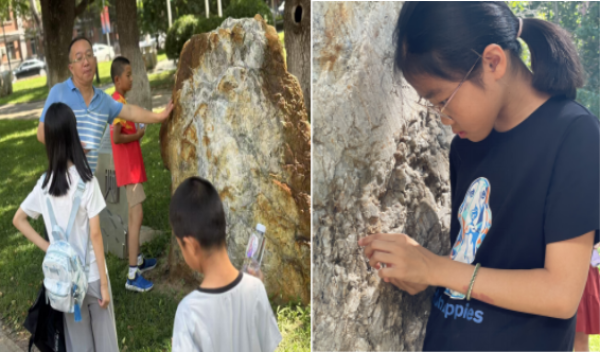 托管研学活动还策划并组织了为期3天的研学之旅,活动的首站走进中国地质博物馆,孩子们瞬间被璀璨的矿物晶体和记录地球沧桑巨变的岩石深深吸引。在专业讲解员的带领下,他们化身“小小地质学家”,沿着地球46亿年的演化长廊,探寻板块运动的伟力、火山喷发的壮阔以及生命演化的神奇轨迹。互动模型、珍贵的化石标本和生动的多媒体展示,让孩子们惊叹连连,好奇心被彻底点燃,纷纷提问、记录,在寓教于乐中感受地质科学的魅力,激发了探索未知的热情。