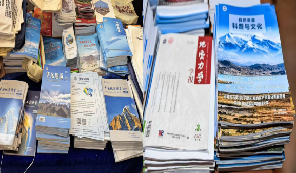 会议期间,编辑部代表在展台集中展示了《中国地质调查》《自然资源科普与文化》两本期刊,吸引了大量与会专家驻足交流。展台前参会者络绎不绝,就期刊内容、投稿事宜及学术热点进行深入咨询。两刊在展出后短时间内即被全部领取,充分反映出读者对其学术质量与内容价值的广泛认可。