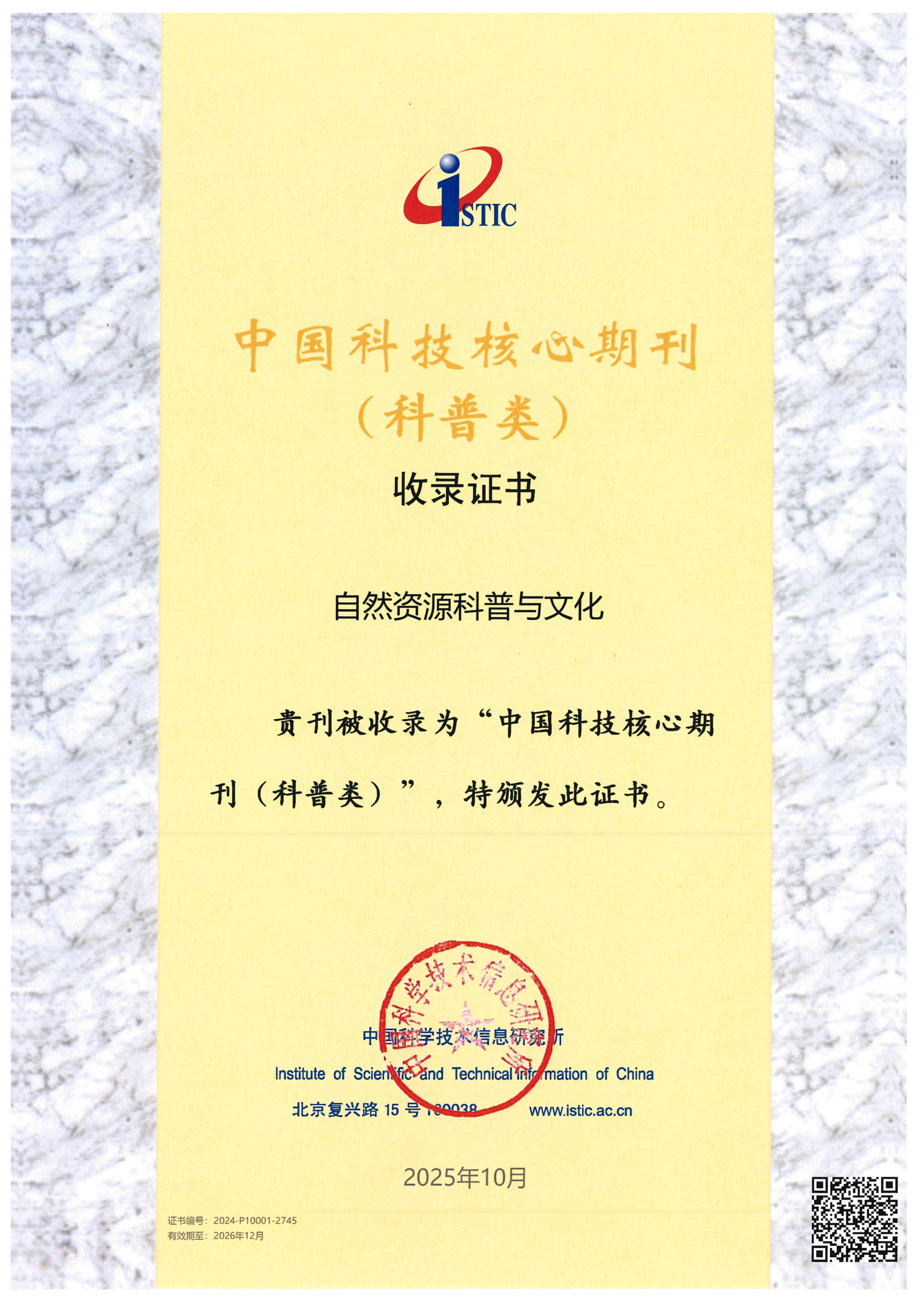 《自然资源科普与文化》首次入选《中国科技期刊引证报告》(科普版),标志着该刊在自然资源科普领域迈上新台阶。该刊以“宣传自然资源事业发展成就、地学研究成果以及自然资源人的风采及优秀文化”为办刊宗旨,长期致力于普及科学知识,弘扬科学精神,传播科学思想,倡导科学方法。通过多栏目、多角度、全方位普及自然资源领域科学知识与文化,积极搭建知识传播与文化沟通的桥梁。此次入选,体现了业界对本刊科普工作的高度认可,进一步彰显了期刊在自然资源科普领域的引领作用。