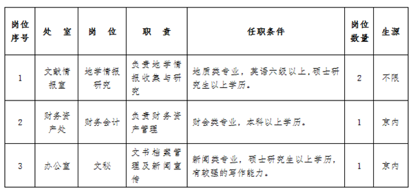 2.报名方式:填写《中国地质调查局地学文献中心应届毕业生报名登记表》,并将登记表和报名材料电子版压缩打包发送E-Mail至zhangxiaohai@cgl.org.cn,文件名要求为:报考岗位+考生姓名。
