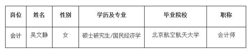经过资格审查、面试、考察、体检等程序,由中国地质调查局地学文献中心集体研究决定,拟聘用吴文静到我中心工作。按照事业单位公开招聘有关规定,现对拟聘人员信息进行公示。公示期间,如有问题,请向我中心反映,或通过中央和国家机关所属事业单位公开招聘服务平台进行反映。