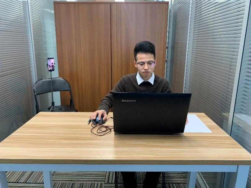 (4)考试开始前,考生需要先登录移动端“智考通”,用前置摄像头360度环绕拍摄考试环境,随后将移动设备固定在能够拍摄到考生桌面、考生电脑屏幕内容、周围环境及考生行为的位置上继续拍摄(详见说明书中《智考通操作手册》《智考云在线考试规范》)。