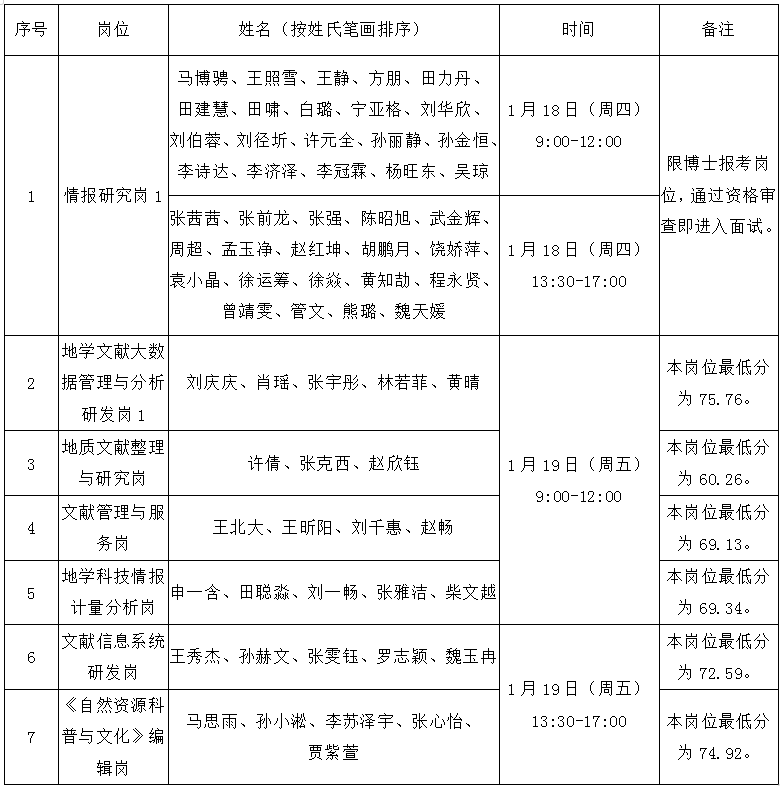 根据中国地质调查局地学文献中心2024年公开招聘应届毕业生面试工作方案,现将面试人员名单和有关安排通知如下: