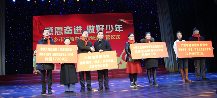 12月21日,自然资源部中国地质调查局地学文献中心(中国地质图书馆)受邀参加“感恩奋进,做好少年——萍乡市红领巾丹勋营地扩营活动”。萍乡市政府、广东省丹勋教育基金会、自然资源部中国地质调查局地学文献中心、中国人民健康保险股份有限公司、大地出版社、红领巾丹勋营地归属地等单位相关负责人和少先队员代表共计120余人参加仪式。仪式上,萍乡市政府对中国地质调查局地学文献中心为萍乡市红领巾丹勋营地做的贡献表示感谢,并颁发了捐赠牌匾。