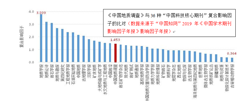 三是注重质量建设,期刊的影响因子和影响力指数显著提升。期刊影响因子和影响力指数是评价期刊的重要参数。据“中国知网”2017—2019年统计年报,《中国地质调查》期刊的复合影响因子已从2017年的0.5上升到2019年的1.453,三年内,期刊的影响因子提升了近3倍。如果将《中国地质调查》的影响因子放在地质学类36种“中国科技核心期刊”列表中进行比对,