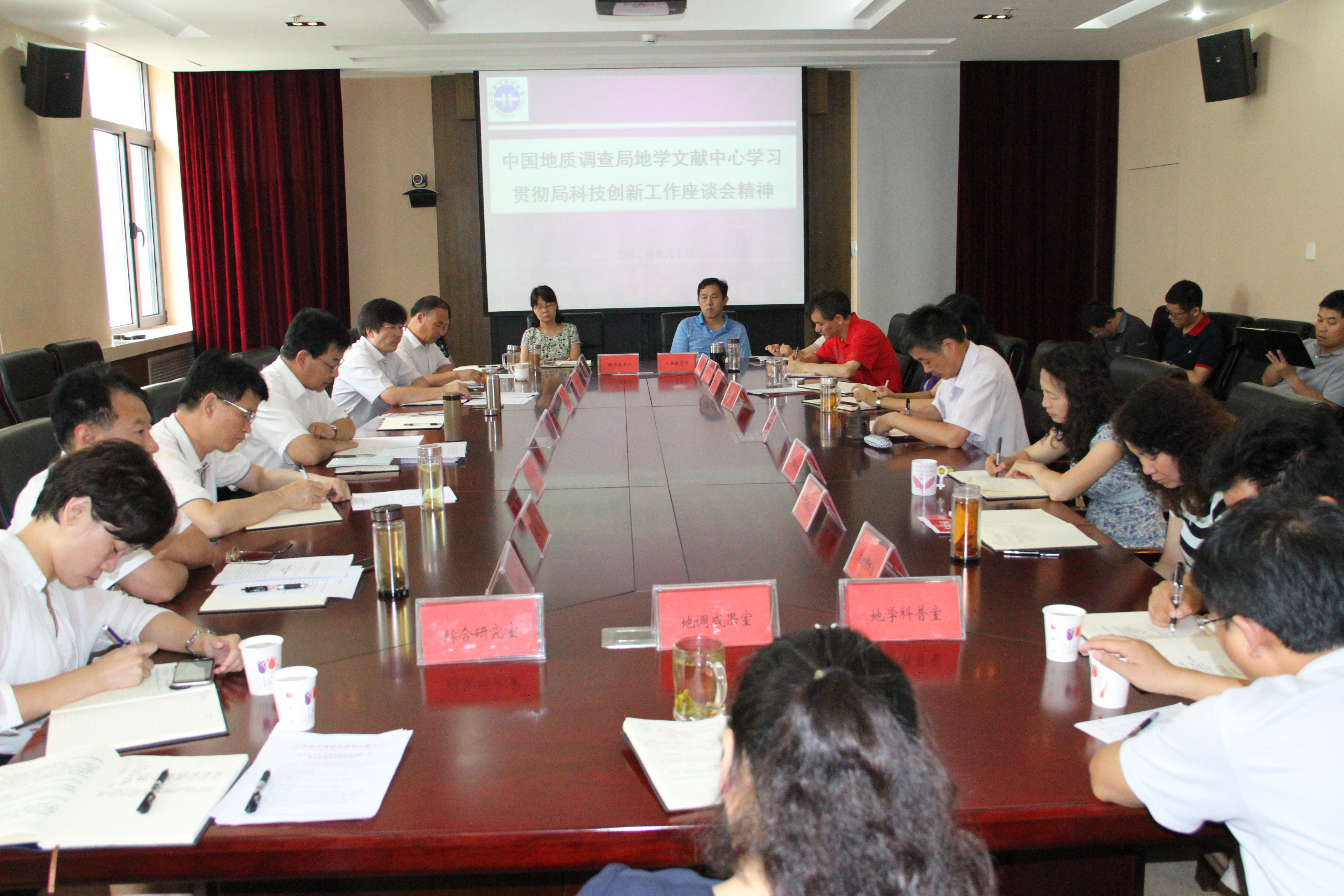 会议由文献中心主任刘延明主持并介绍了局科技创新座谈会的召开情况,传达了部党组孙绍骋书记在广州海洋地质调查局工作座谈会上讲话精神。领导班子成员分别传达了《中国地质调查局“十三五”科技创新发展规划落实推进方案》、《中国地质调查局促进科技成果转化实施办法(试行)》、《中国地质调查局关于激发地质科技人员积极性创造性实施办法(试行)》和《中国地质调查局关于规范直属单位工资管理的通知》。大家一致表示,要准确理解和吃透局党组的意图,坚决执行局党组重大决策部署,用科技创新改造文献中心工作,紧密围绕局中心工作需求,进一步解放思想,转变观念,创新服务方式,精心组织队伍,调整业务结构,做好服务支撑工作。
