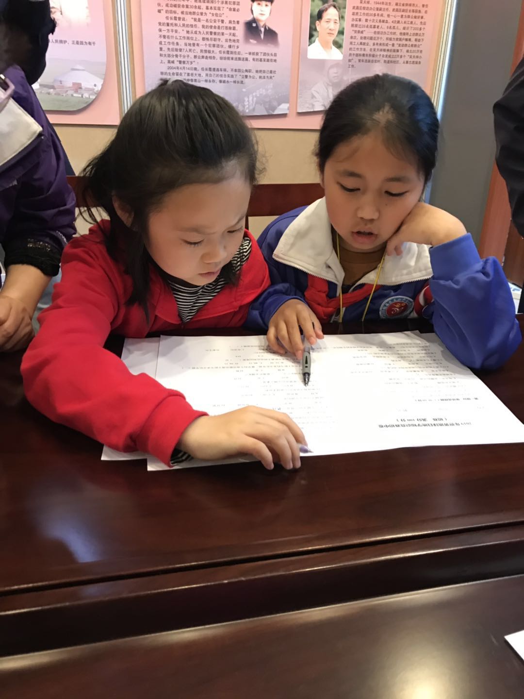 本次活动分三个环节,首先是四所小学的同学自我介绍,并拿出自己制作的作品、礼物,分享给同学们;然后是读书分享,同学们介绍自己喜欢的图书及喜欢的理由;最后是赣州和北京的小朋友合作填写由博物馆提供的北京中学生知识竞赛试题。在自我介绍和读书交流环节,同学们通过自己制作绘画作品、手工明信片展示了自己的才艺,通过喜欢的书展示了自己的认知,《狼王梦》、《地质探秘之旅-可燃冰》、《水浒传》等推荐作品让不同区域的孩子感到世界的新奇。在合作答题环节,赣州和北京的小朋友展现了惊人的科学认知能力,一起讨论着诸如“地球上最多的元素是什么”、“那种矿物更硬”等地质知识,直到中午,同学们才恋恋不舍地结束了这次活动。
