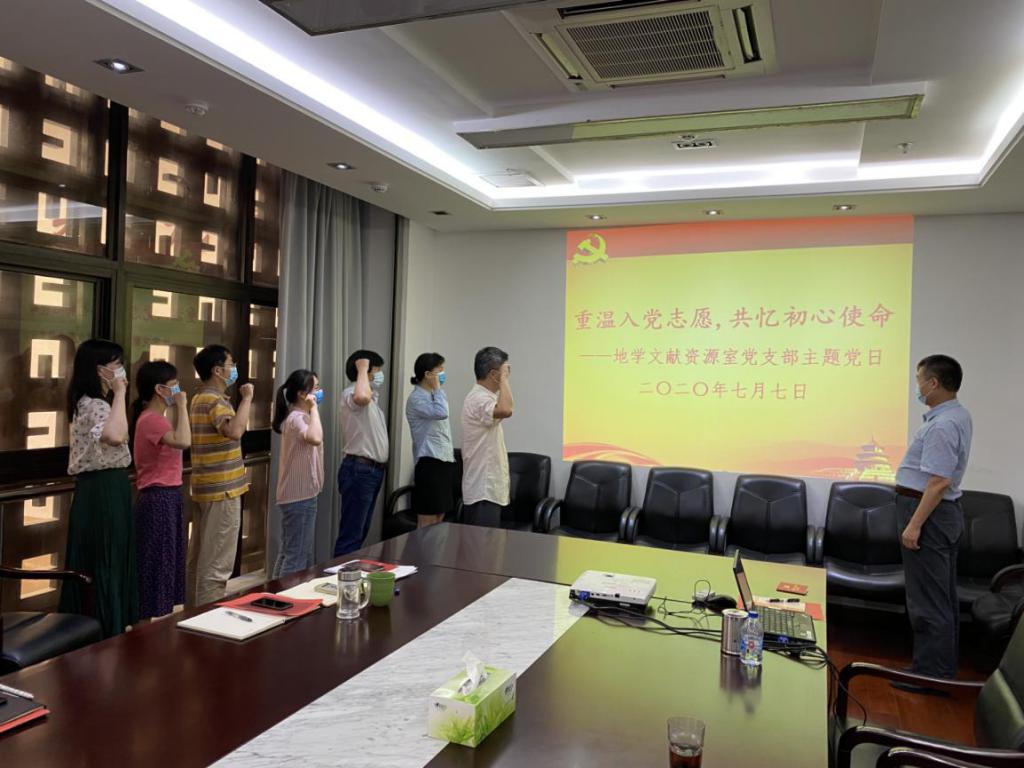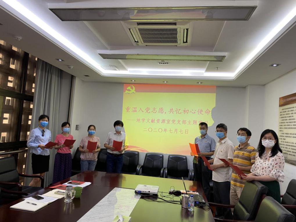 2020年7月7日,在庆祝建党99周年和纪念抗战83周年之际,地学文献资源室党支部以“重温入党志愿,共忆初心使命”为题开展主题党日活动,加强党性锻炼,落实局长对江西省于都县峡山小学感谢信的批示精神。