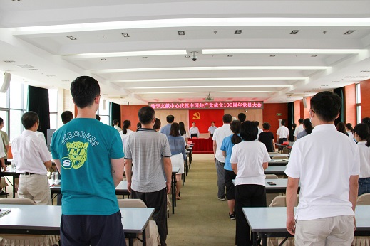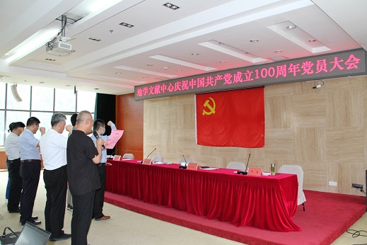 在中国共产党百年华诞之际,中国地质调查局地学文献中心于6月29日下午召开了庆祝建党100周年党员大会,表彰先进,重温入党誓词,开展“永远跟党走”群众性主题宣传教育暨专题党课,党委班子成员及全体党员参加了会议。地学文献中心党委书记薛迎喜同志主持会议并讲话。